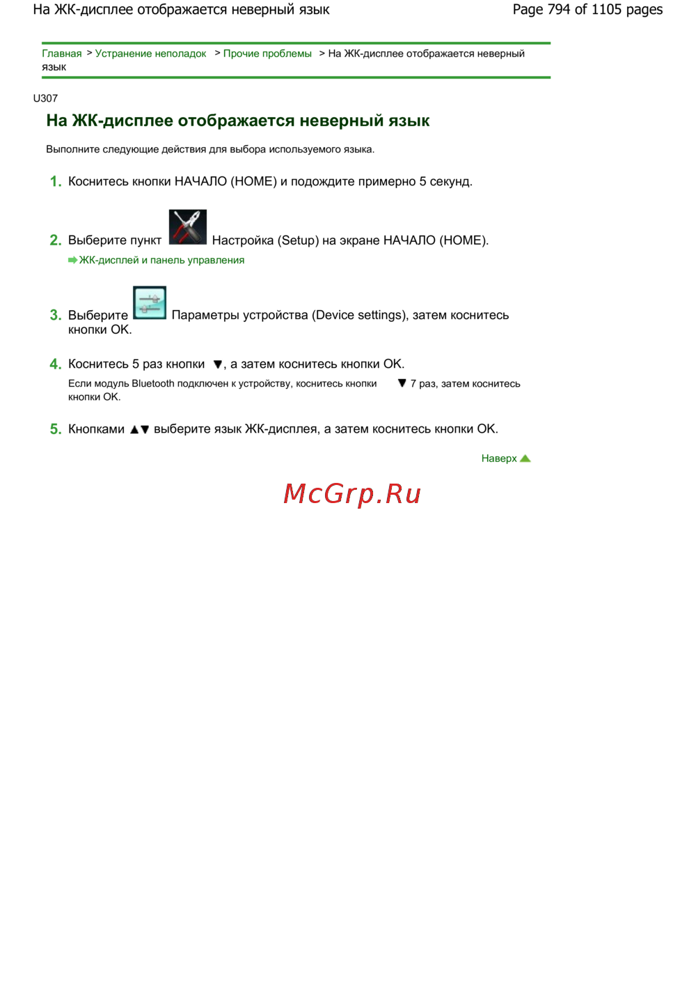 Page 794 of 1105 pagesНа ЖК-дисплее отображается неверный язык