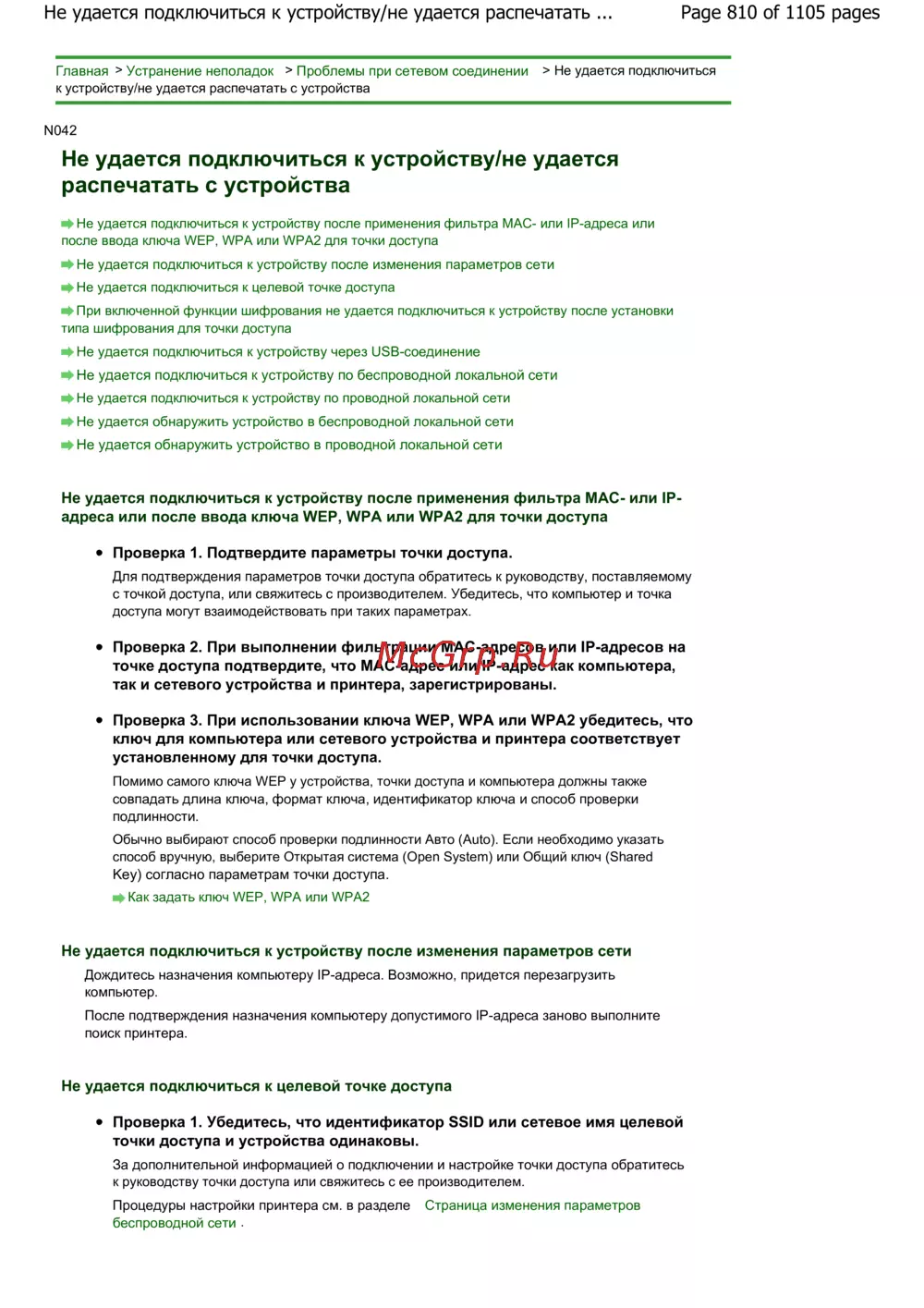 Page 810 of 1105 pagesНе удается подключиться к устройству/не удается распечатать ...