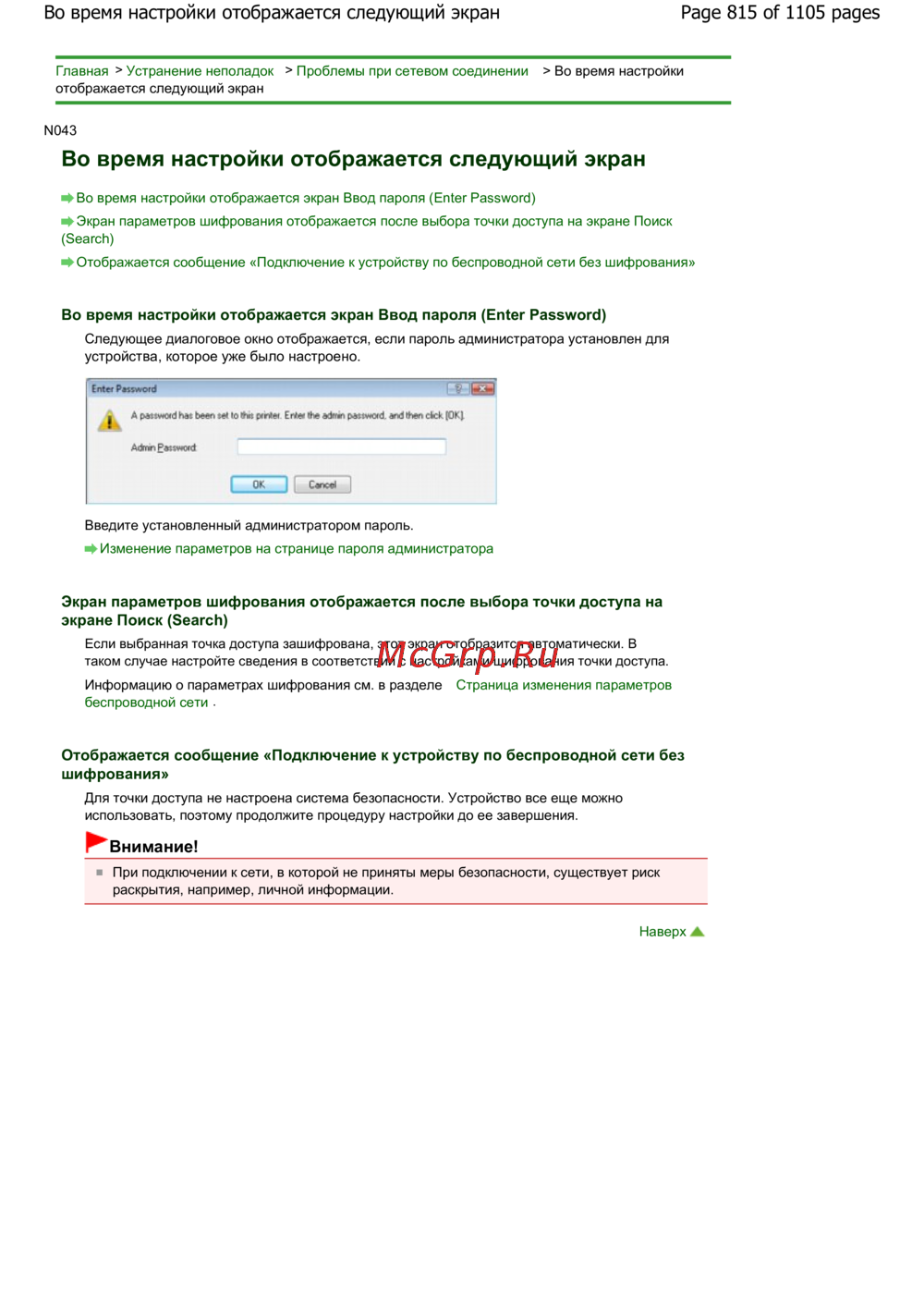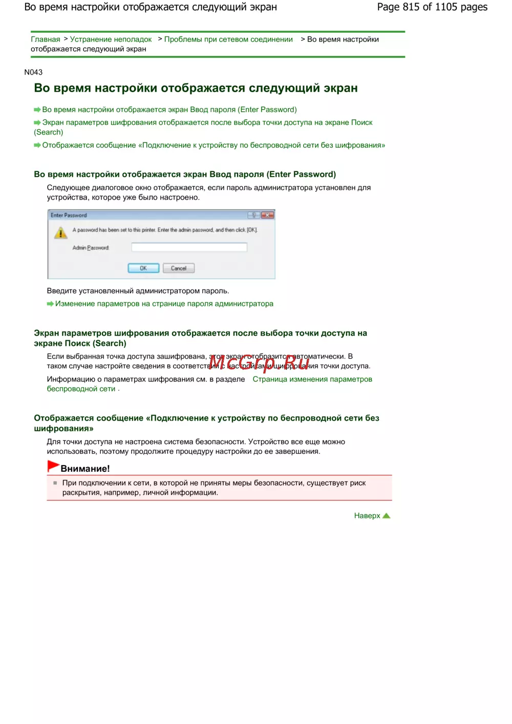 Canon Pixma MG6240 — устранение неполадок при сетевом соединении: экран N043 [815/1105]