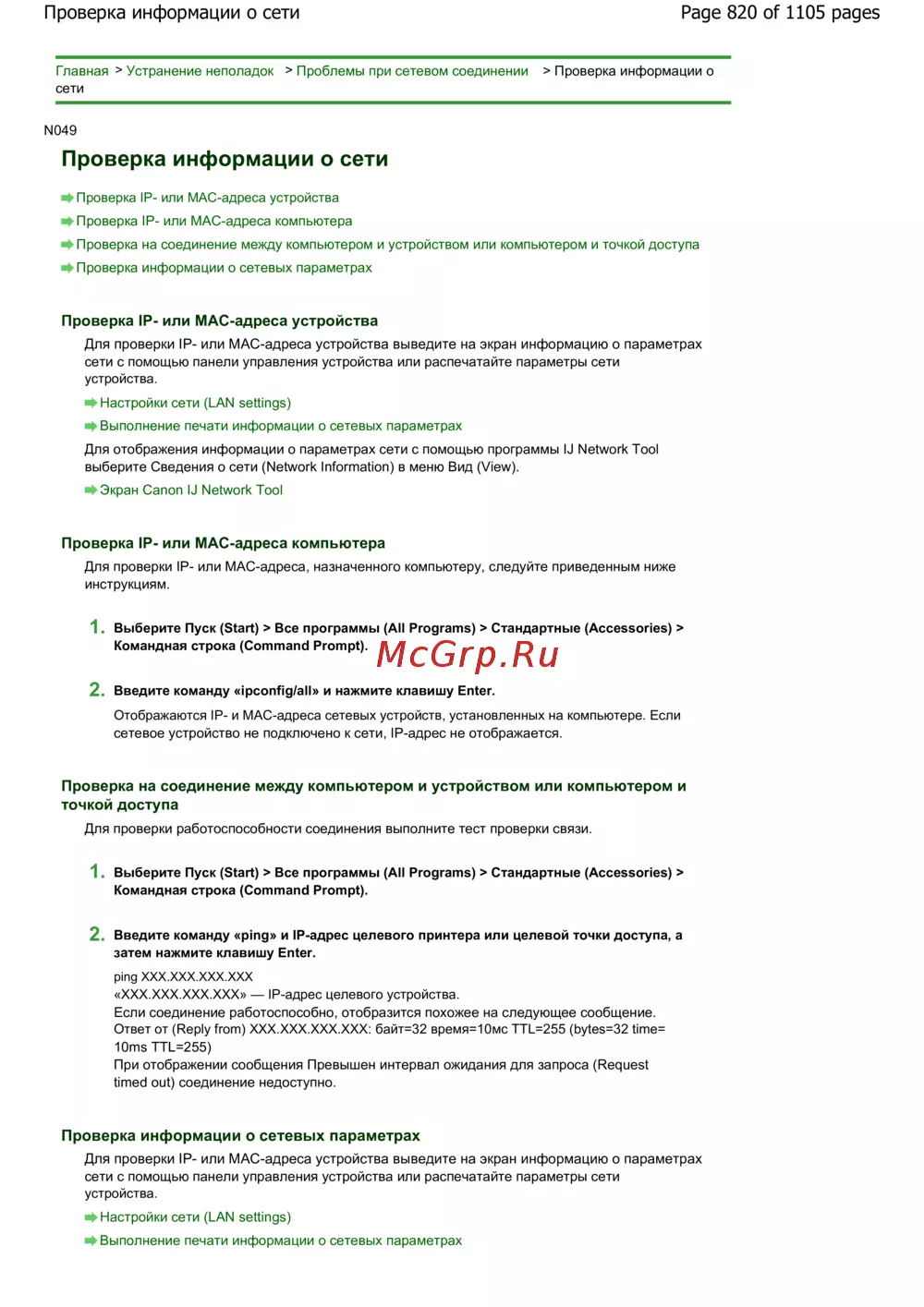 Canon Pixma MG6240 — проверка сетевых параметров: IP и MAC адреса устройств [820/1105]