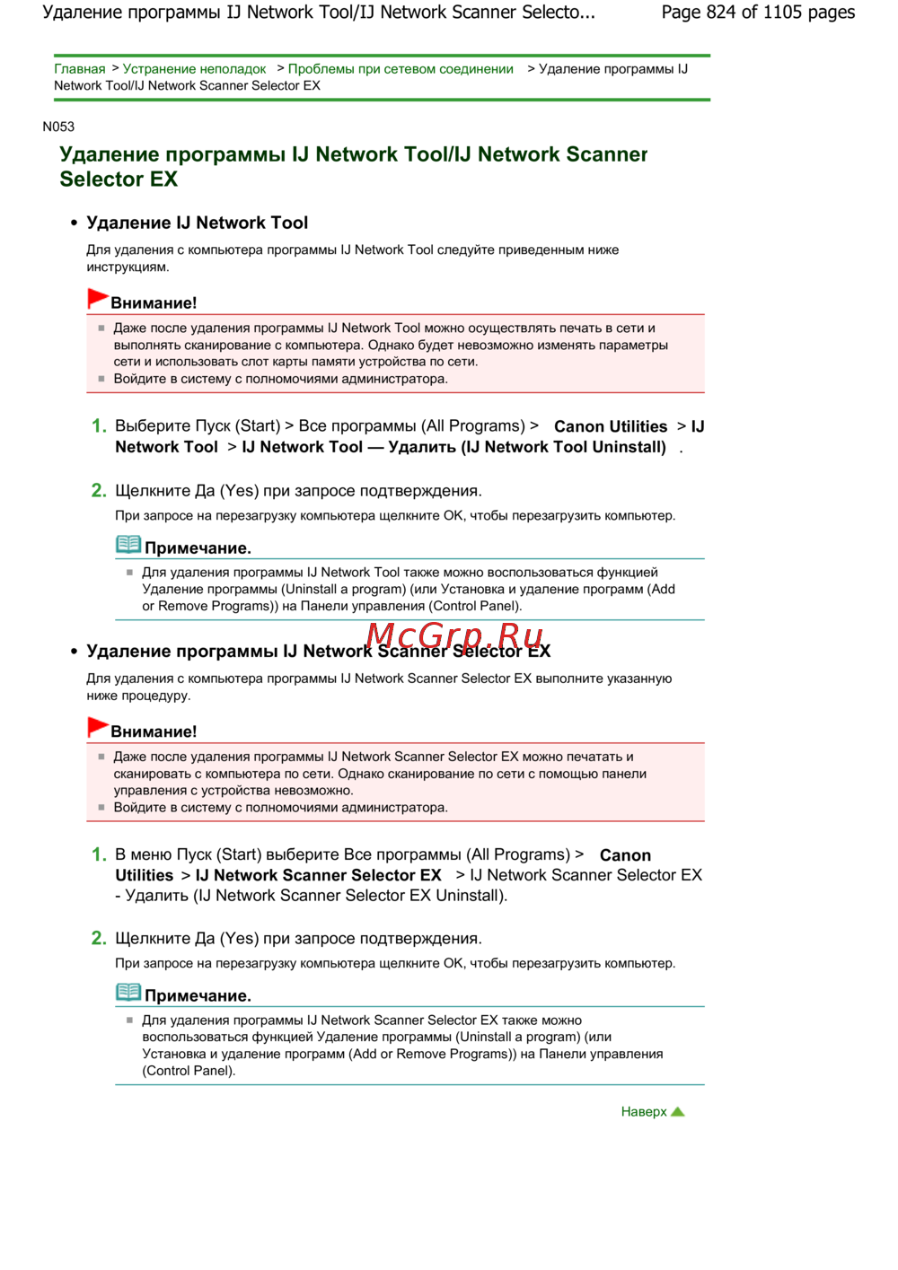 Page 824 of 1105 pagesУдаление программы IJ Network Tool/IJ Network Scanner Selecto...