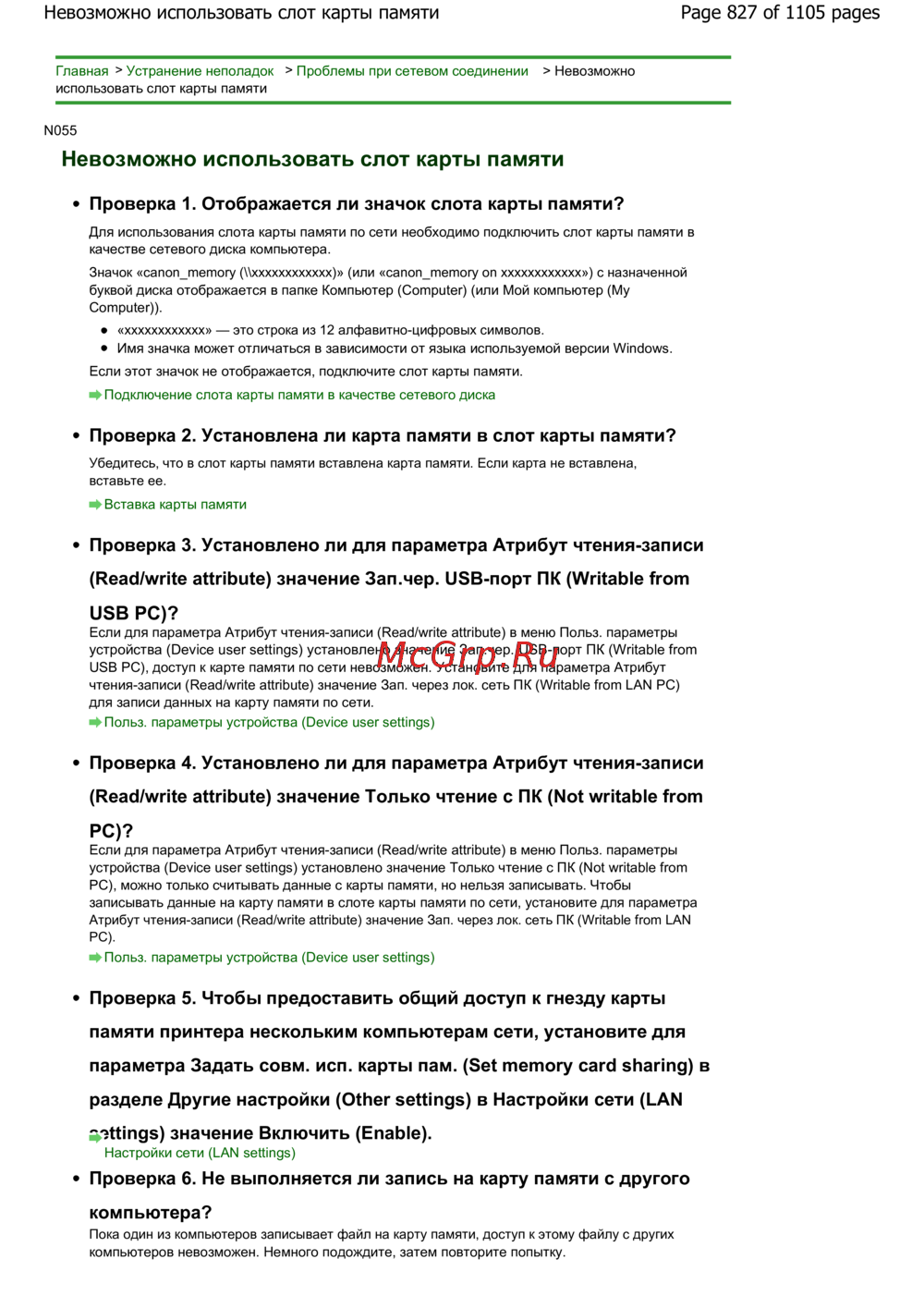 Page 827 of 1105 pagesНевозможно использовать слот карты памяти