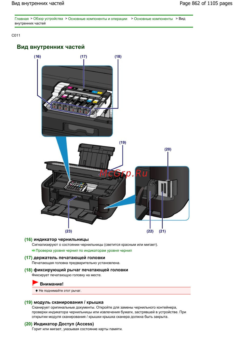 Canon Pixma MG6240 — обзор основных компонентов устройства и их функции [862/1105]