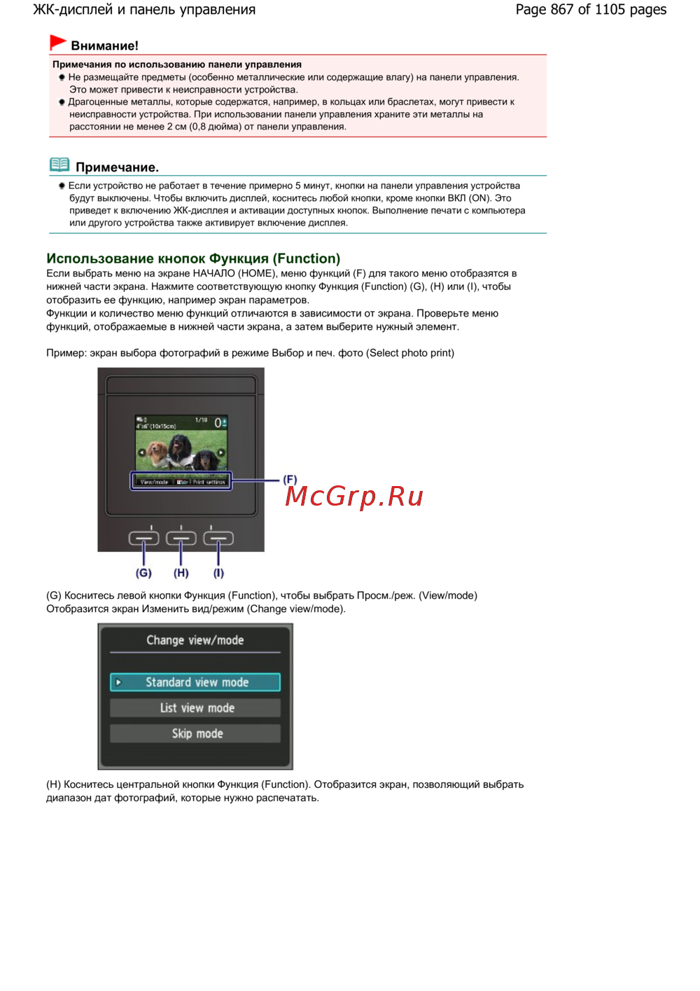 Canon Pixma MG6240 — рекомендации по использованию панели управления устройства [867/1105]