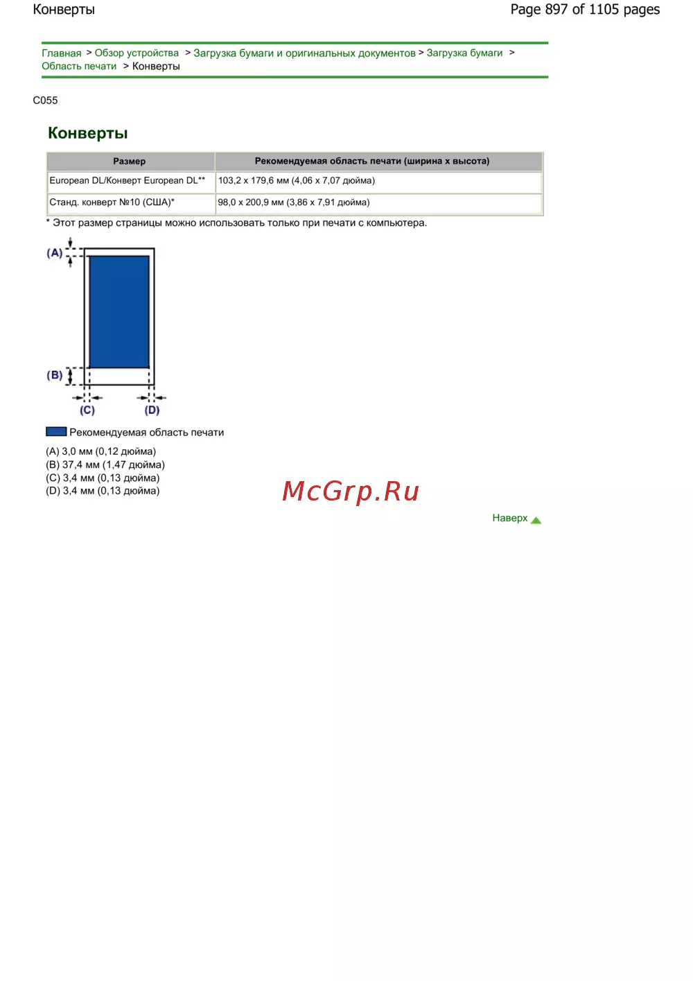 Canon Pixma MG6240 — обзор области печати для конвертов и документов [897/1105]