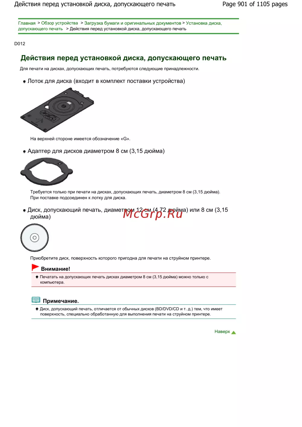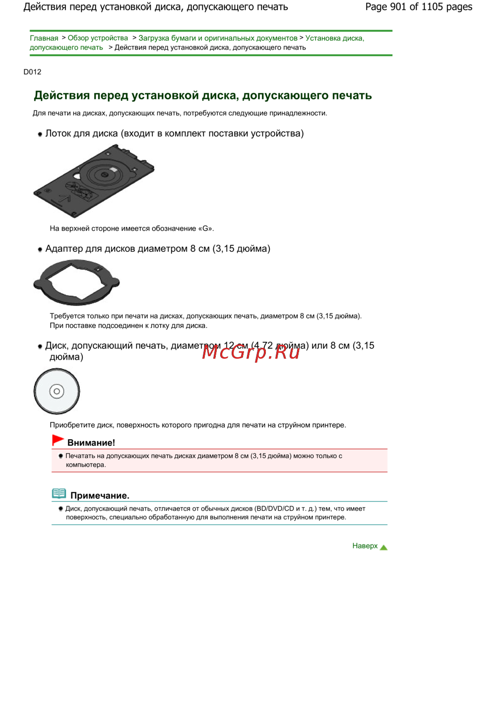 Page 901 of 1105 pagesДействия перед установкой диска, допускающего печать