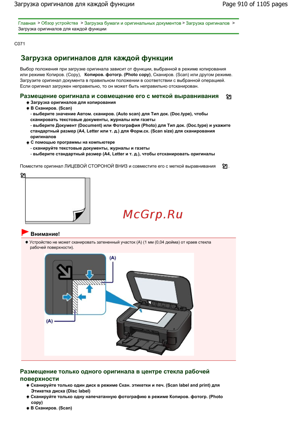 Canon Pixma MG6240 — как правильно загружать оригиналы для копирования и сканирования [910/1105]