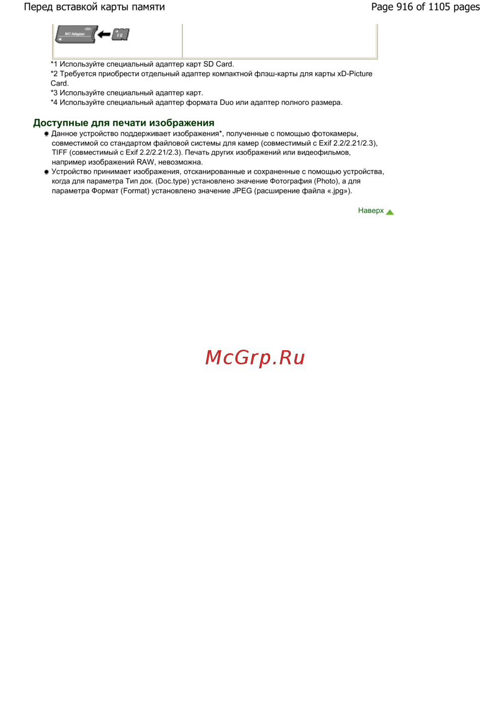Canon Pixma MG6240 — как использовать адаптеры для карт памяти и печати изображений [916/1105]