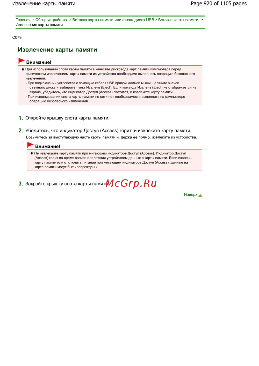 Canon Pixma MG6240 — как правильно извлечь карту памяти из устройства [920/1105]