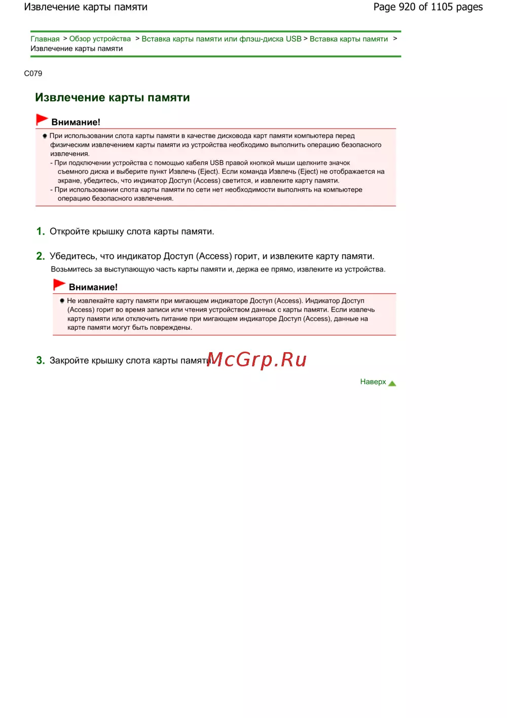 Page 920 of 1105 pagesИзвлечение карты памяти