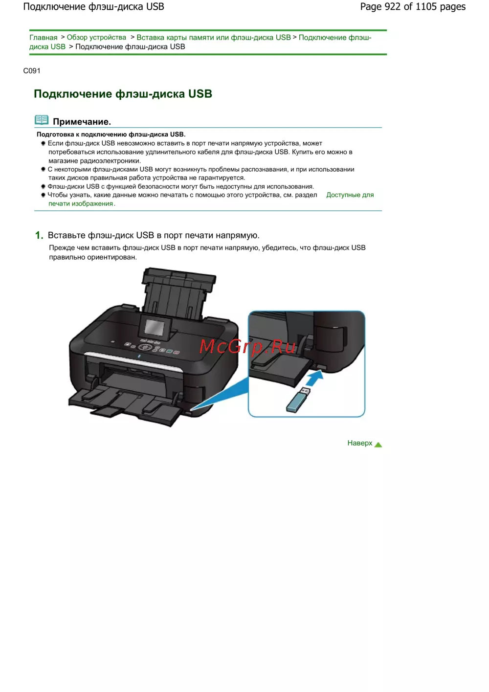 Canon Pixma MG6240 — как подключить флэш-диск USB к устройству: пошаговое руководство [922/1105]