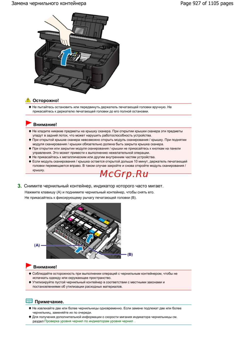 Page 927 of 1105 pagesЗамена чернильного контейнера