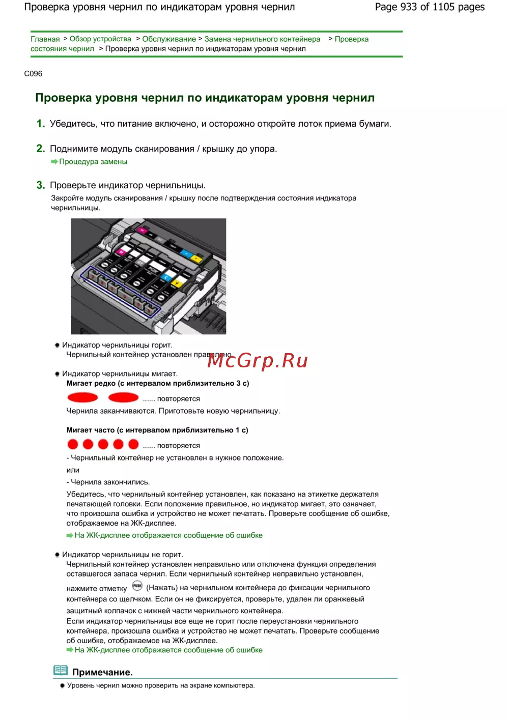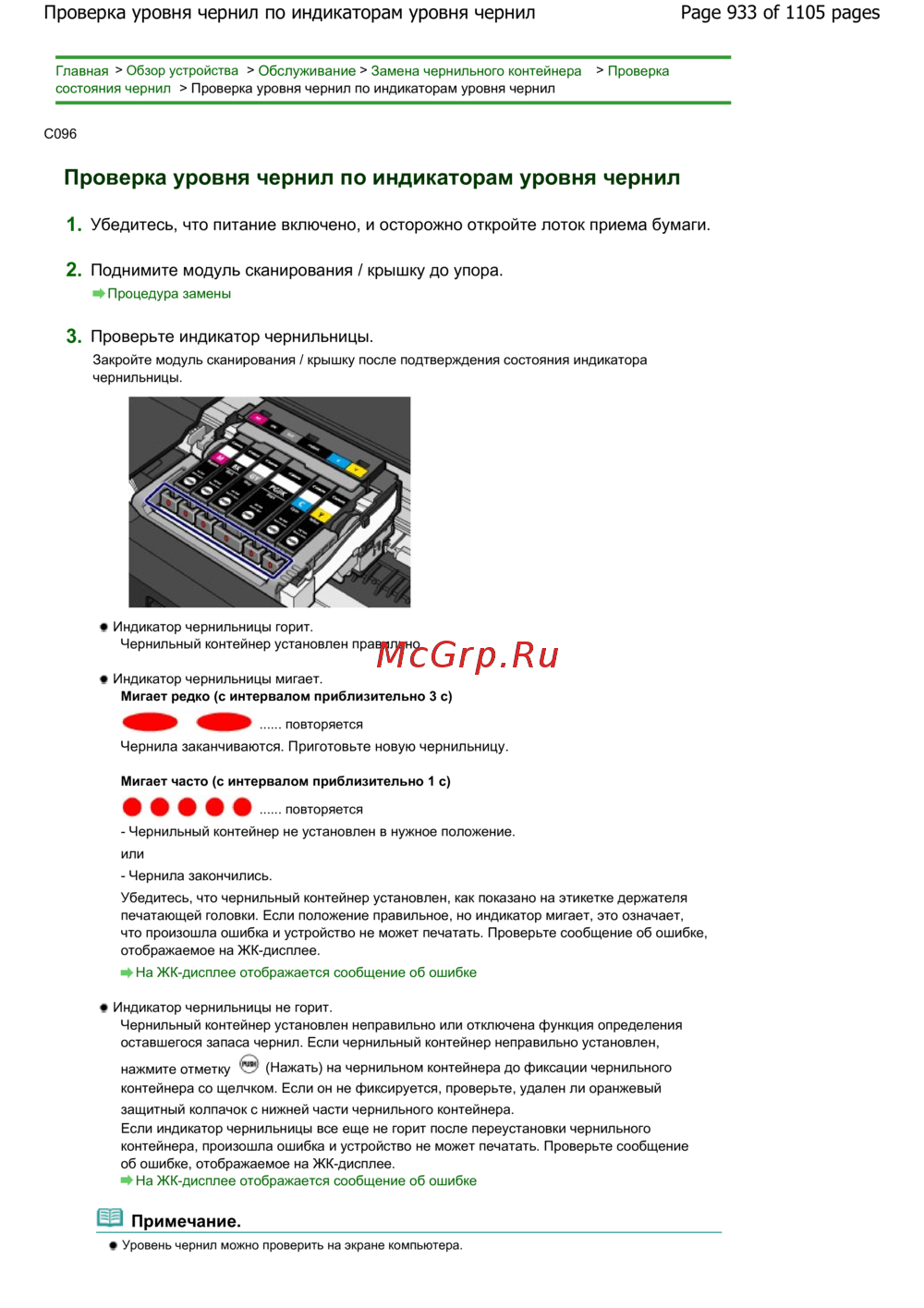 Page 933 of 1105 pagesПроверка уровня чернил по индикаторам уровня чернил