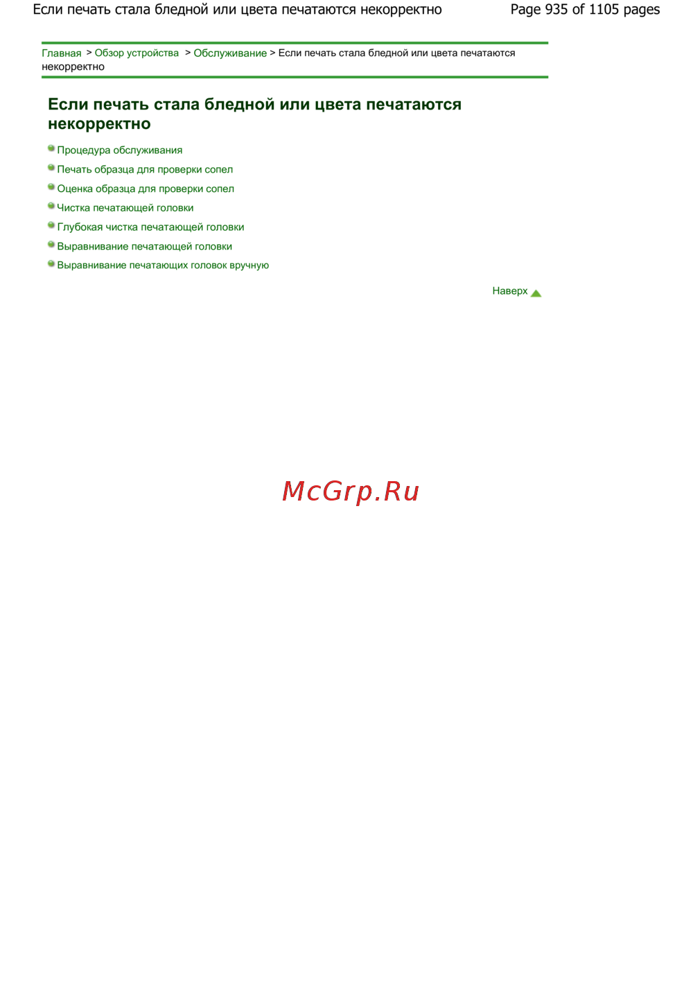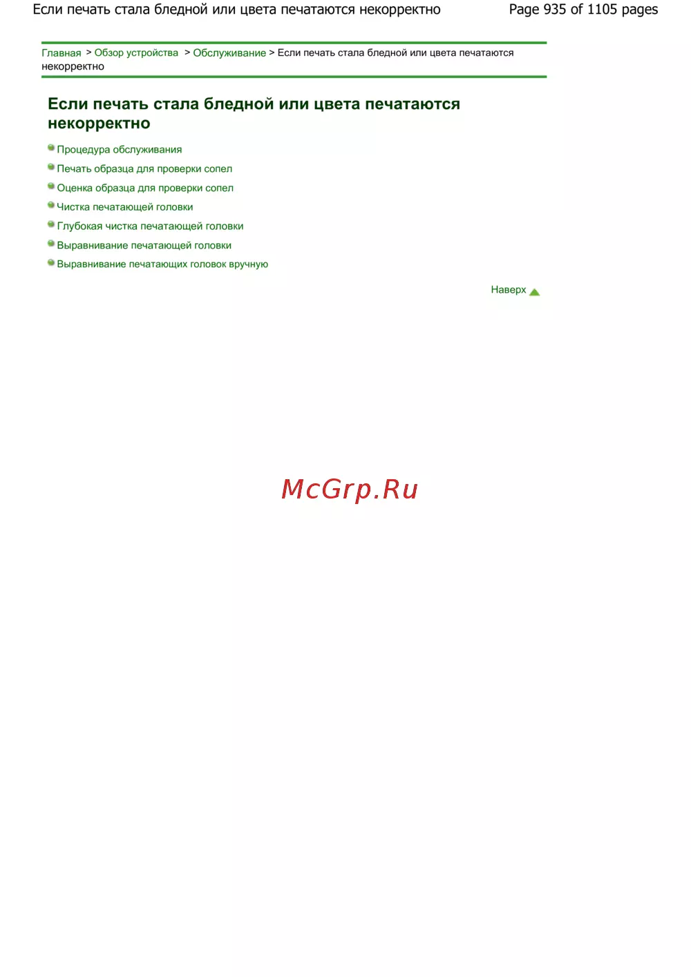 Page 935 of 1105 pagesЕсли печать стала бледной или цвета печатаются некорректно