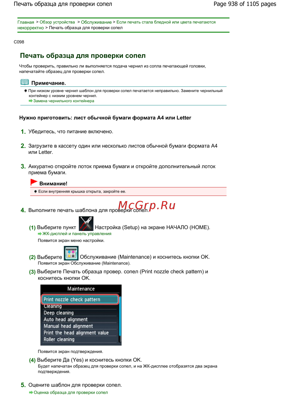 Canon Pixma MG6240 — как проверить сопла печатающей головки и заменить чернила [938/1105]
