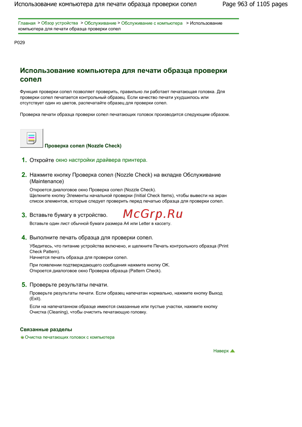 Page 963 of 1105 pagesИспользование компьютера для печати образца проверки сопел