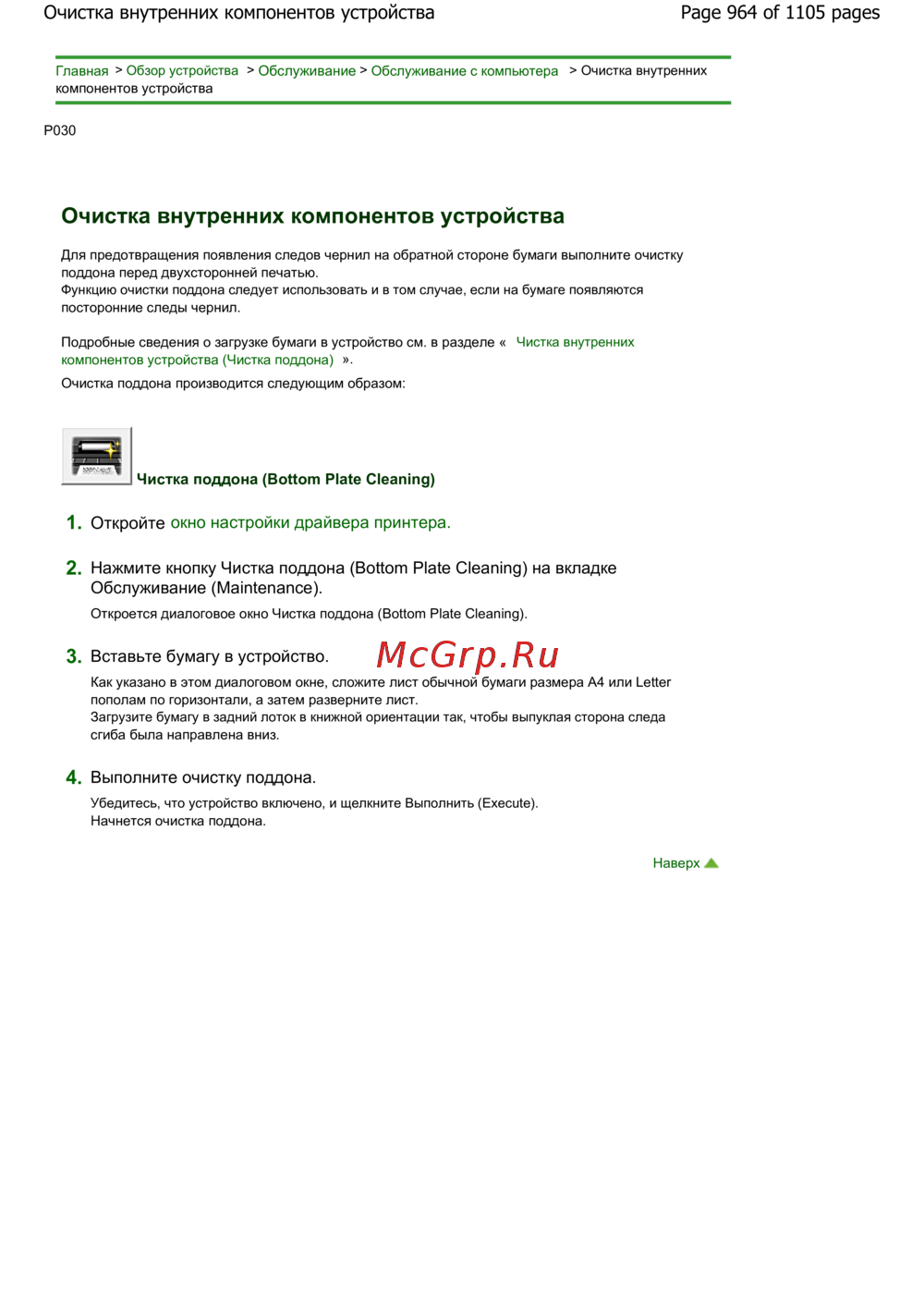 Нажмите кнопку Чистка поддона (Bottom Plate Cleaning) на вкладке