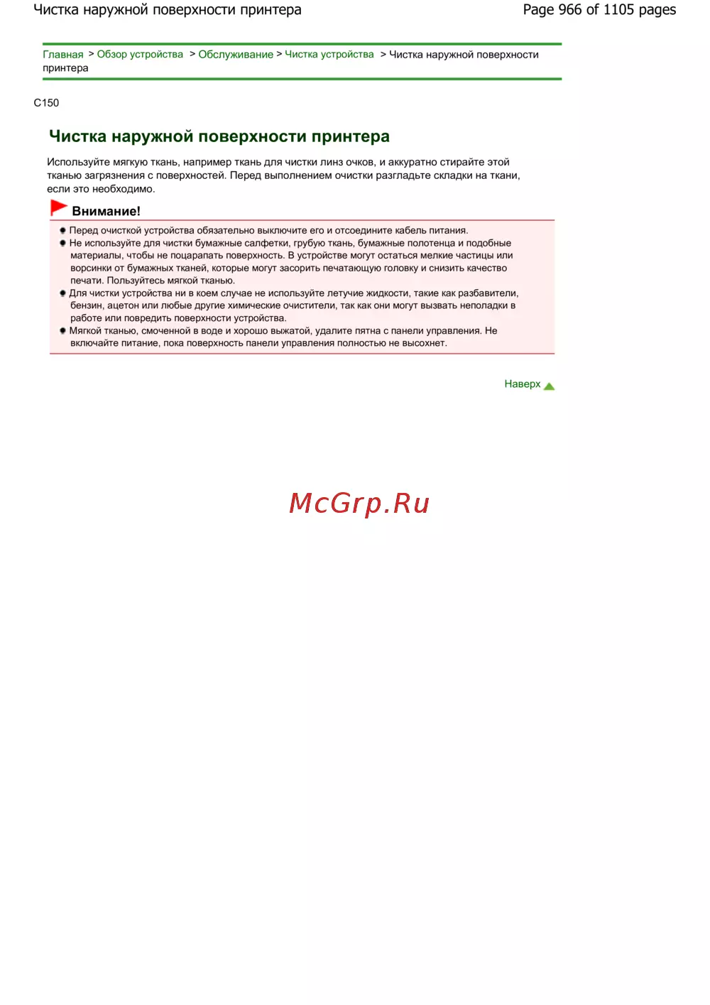 Page 966 of 1105 pagesЧистка наружной поверхности принтера