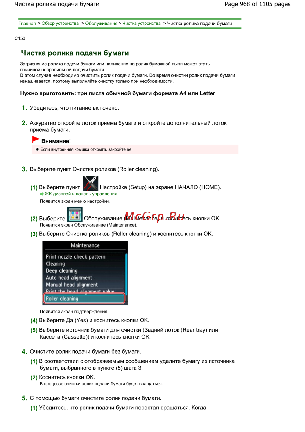 Canon Pixma MG6240 — как правильно очистить ролик подачи бумаги устройства [968/1105]