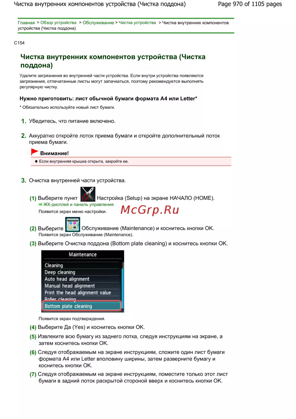 Page 970 of 1105 pagesЧистка внутренних компонентов устройства (Чистка поддона)