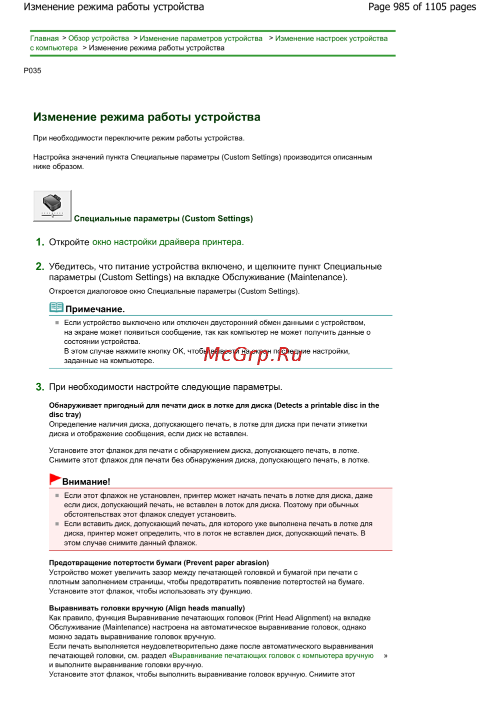 Canon Pixma MG6240 — изменение режима работы устройства: пошаговое руководство [985/1105]