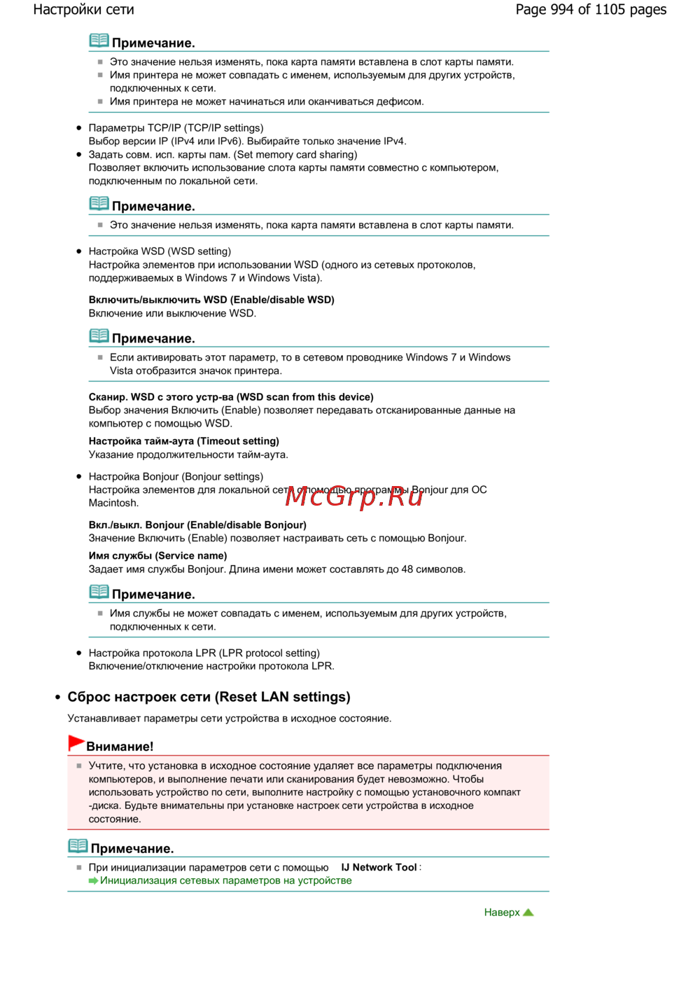 Canon Pixma MG6240 — настройка сетевых параметров для устройств и принтеров [994/1105]