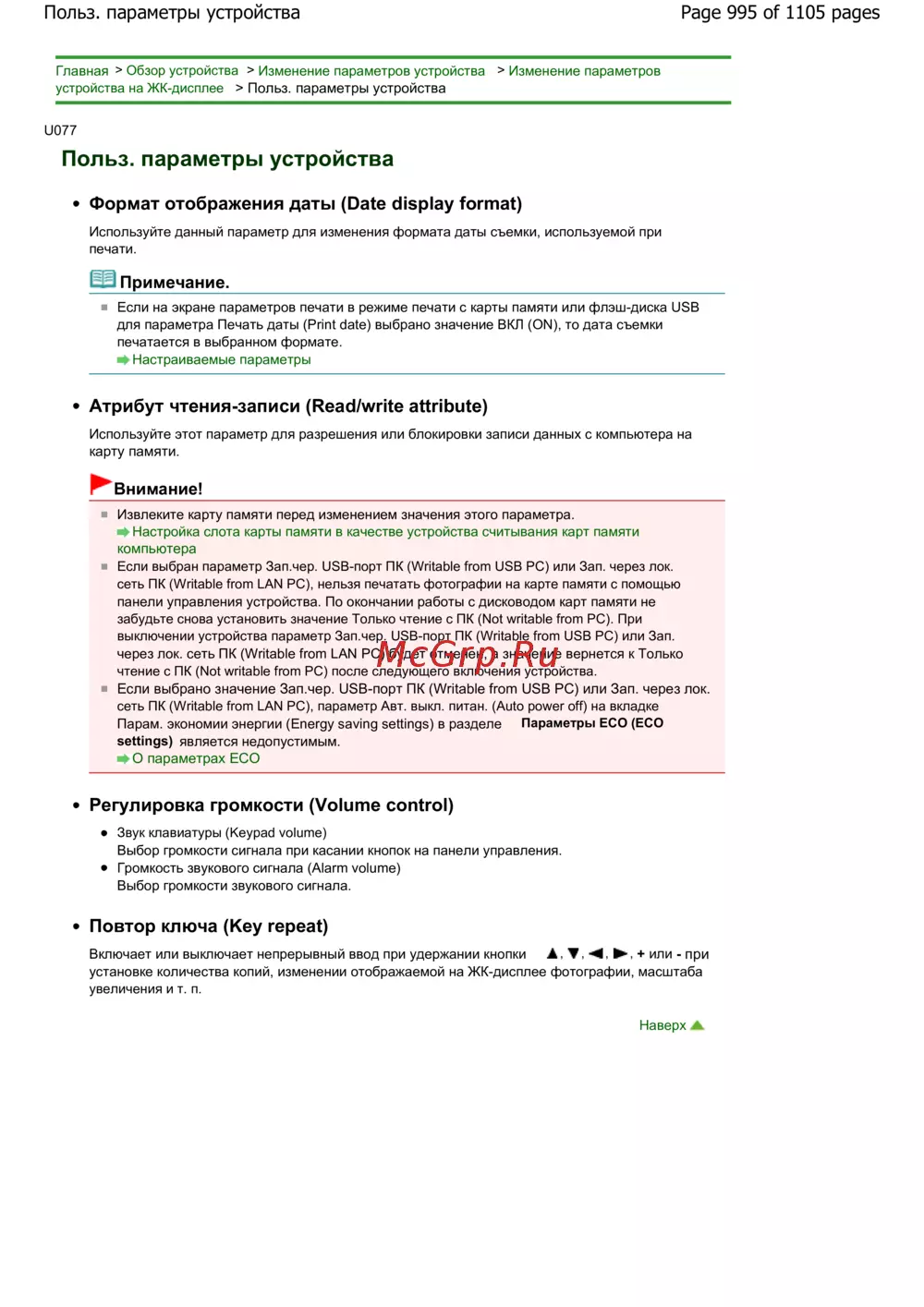 Canon Pixma MG6240 — изменение пользовательских параметров на ЖК-дисплее устройства [995/1105]