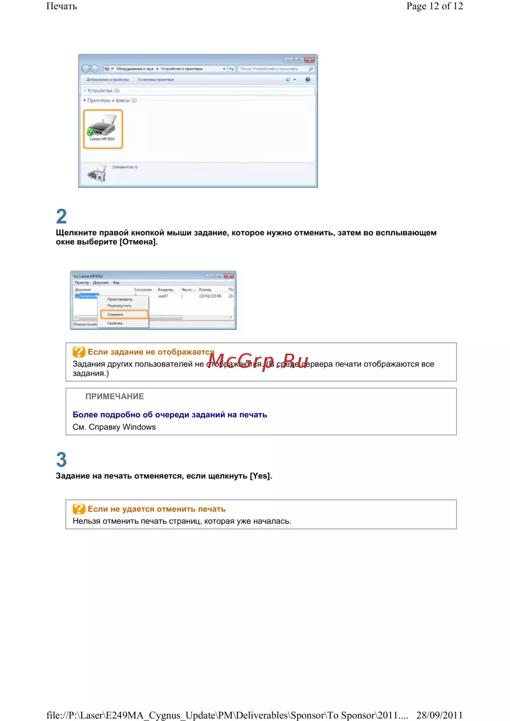 Canon i-SENSYS MF3010 — как отменить задание на печать: пошаговая инструкция [23/410]