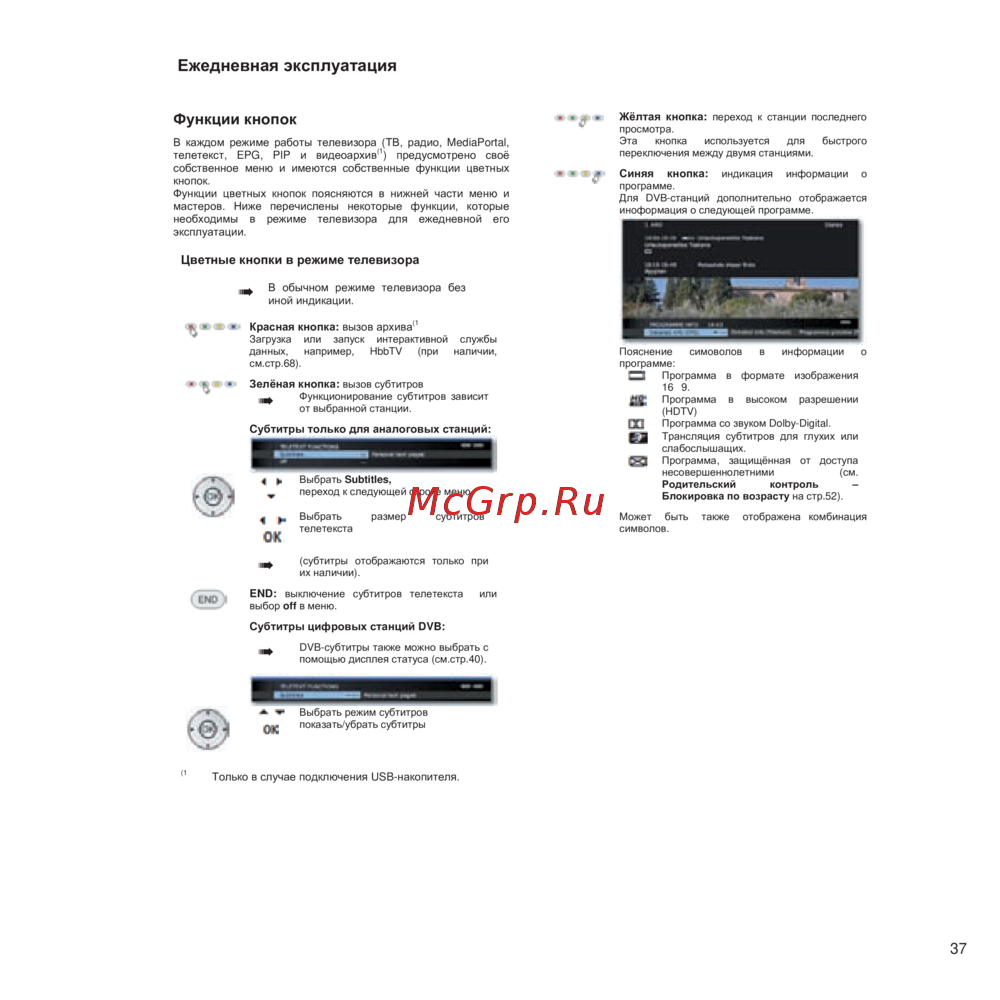 - Использование пульта ду для управления телевизором в режиме радио p.94
