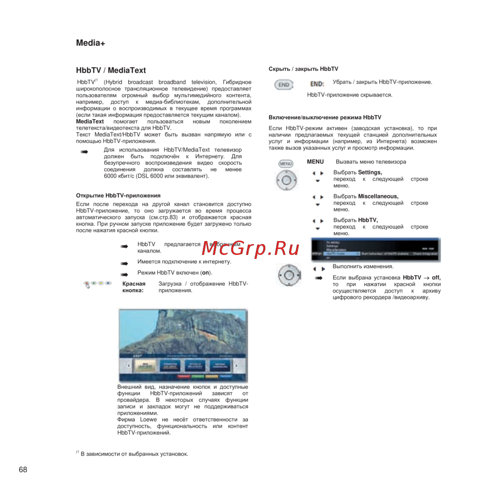 Текст MediaText/HbbTV может быть вызван напрямую или с