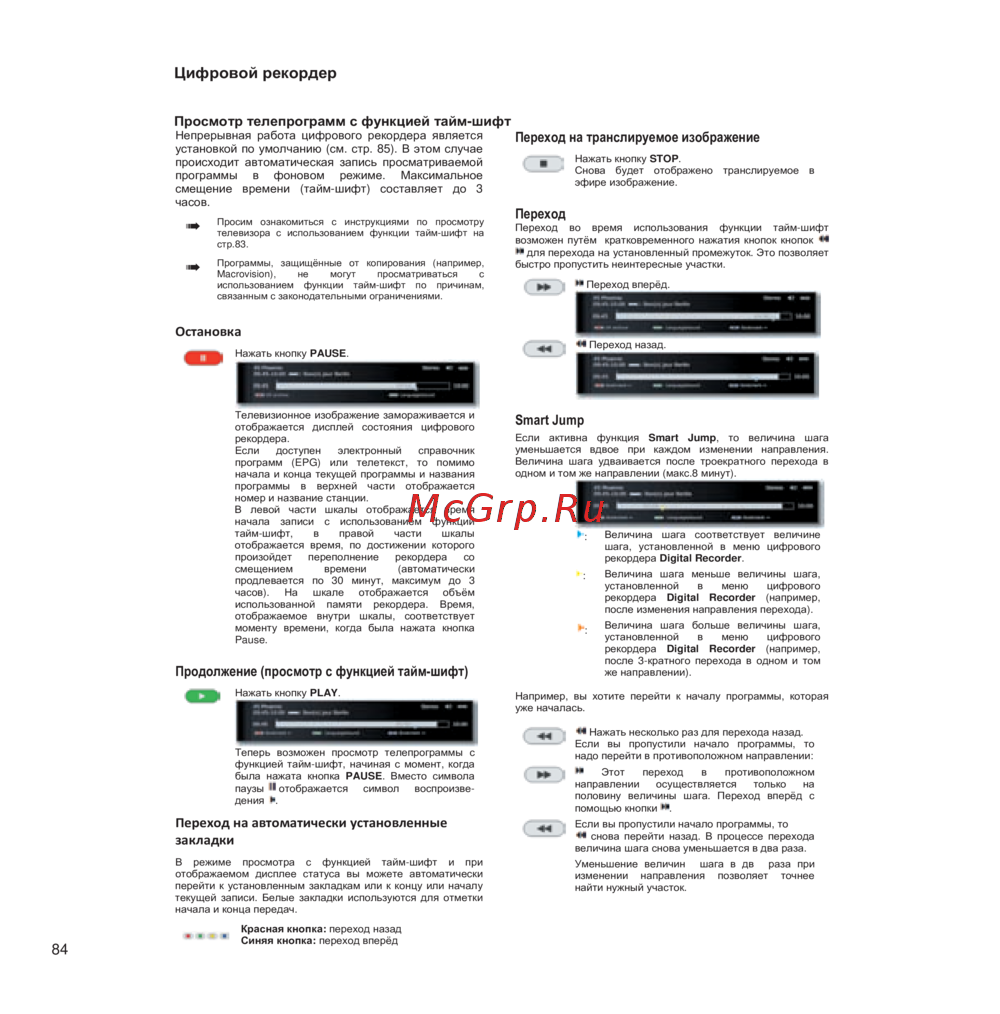 телевизора с использованием функции тайм-шифт на