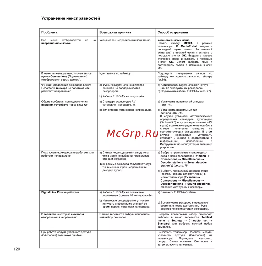 Loewe 50413W80 Black [120/142] Устранение неисправностей