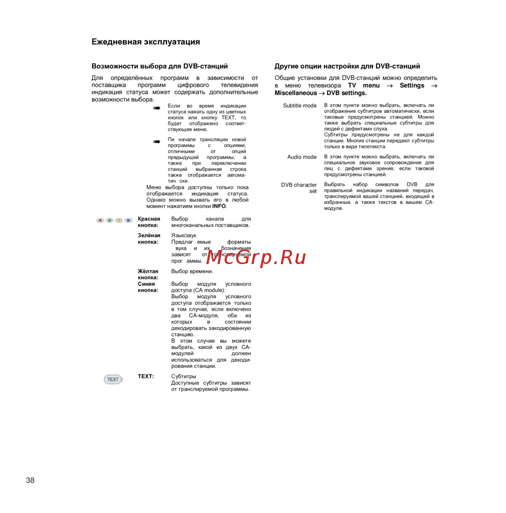 - Установка режима работы функции цветных кнопок в режиме радио p.2