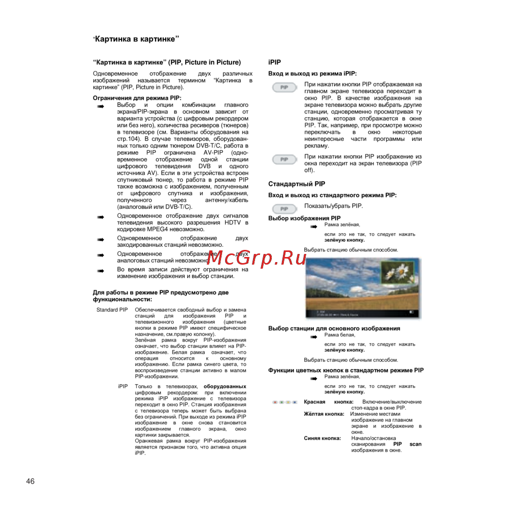 спутниковый тюнер, то работа в режиме PIP