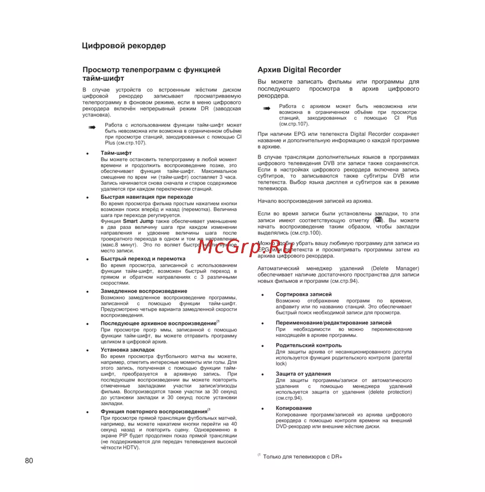 - Ранее записанные программы из архива цифровых записей dr archive на внешний рекордер с помощью функции таблицы таймера p.113