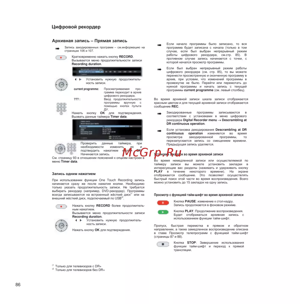 - Запись по таймеру с использованием внешних устройств p.114
