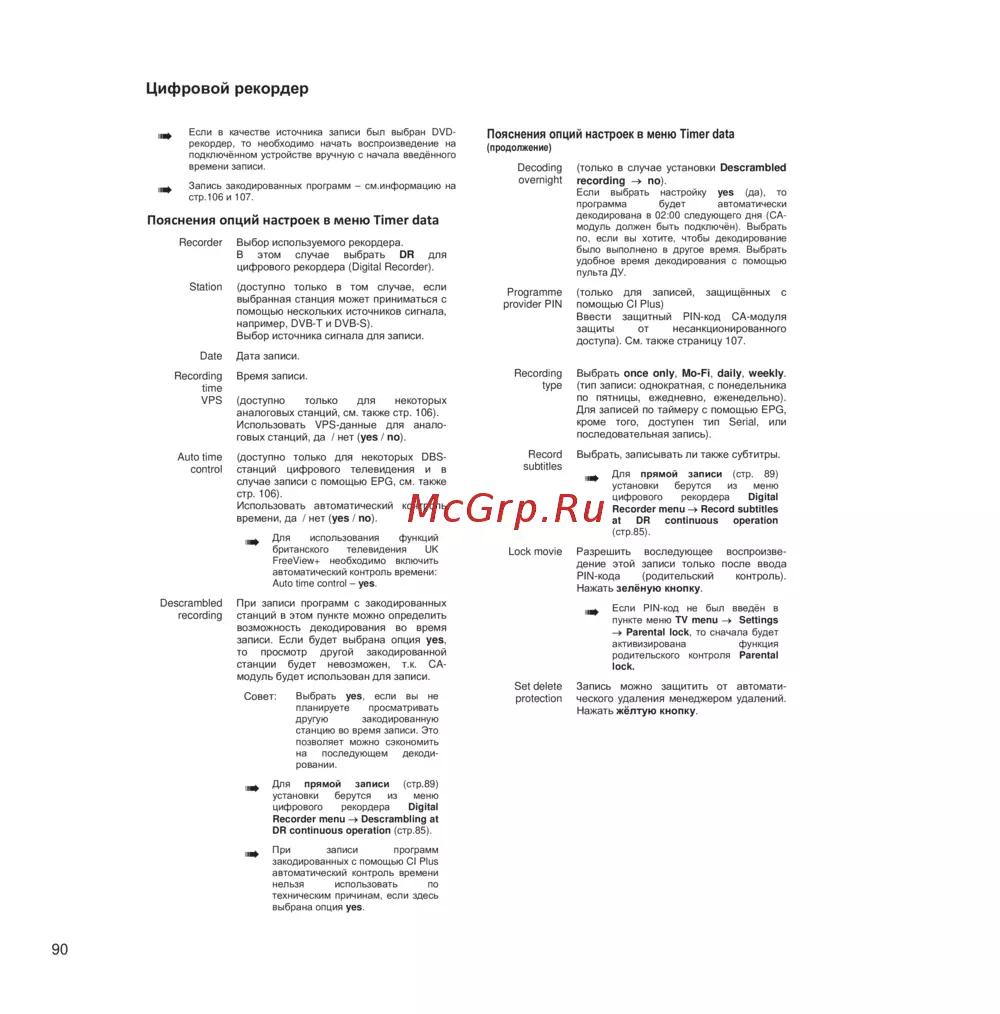 Узнайте, как правильно настроить цифровой рекордер для записи программ, включая выбор источника сигнала и управление декодированием. Полезные советы и инструкции.