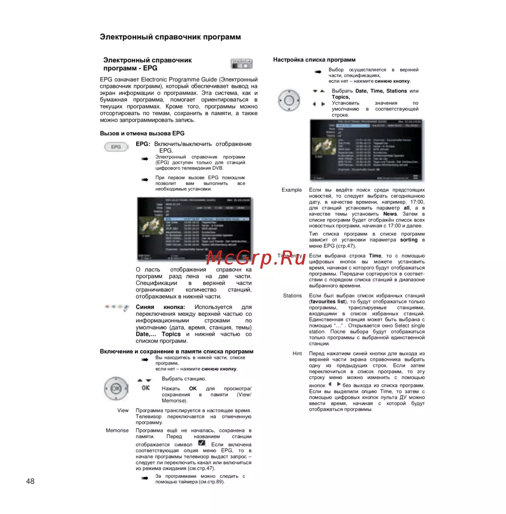 Узнайте, как использовать электронный справочник программ для цифрового телевидения. Настройте отображение, сохранение и сортировку программ по темам и времени.