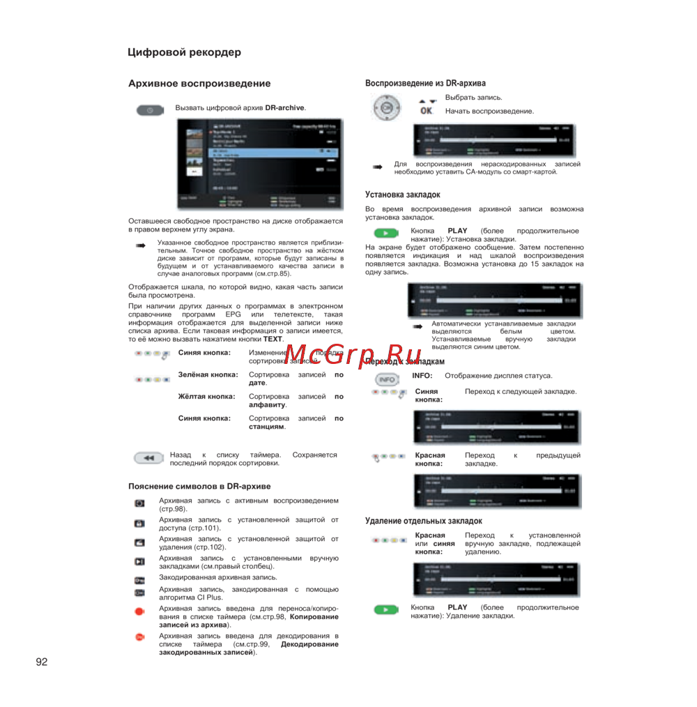 - Все запрограммированные записи отмеченные программы и заказы на копировани p.113