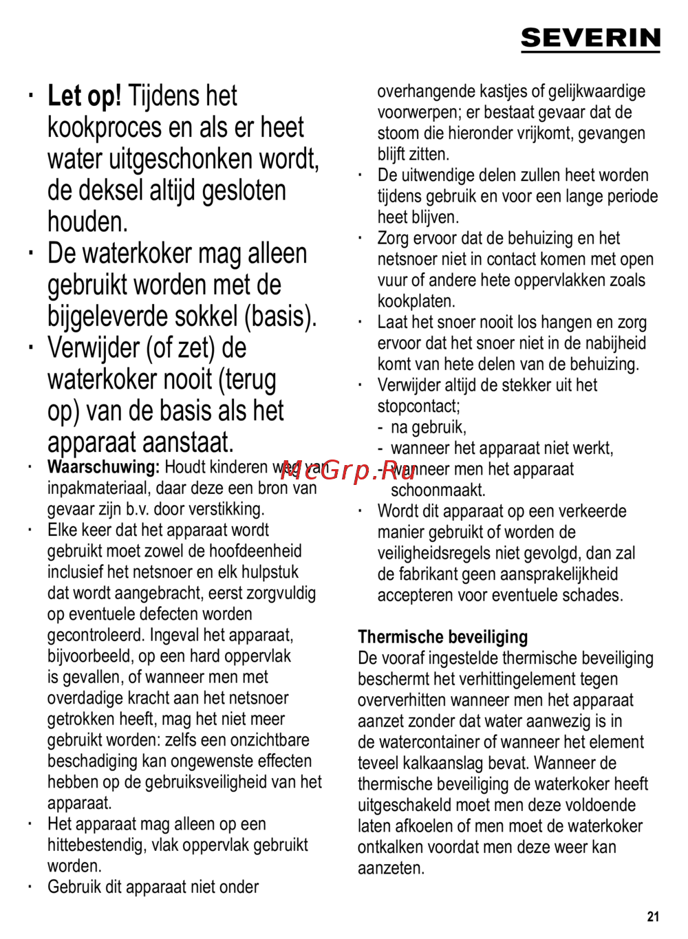 Severin WK 3364 — veiligheidsinstructies voor het gebruik van een waterkoker [21/68]