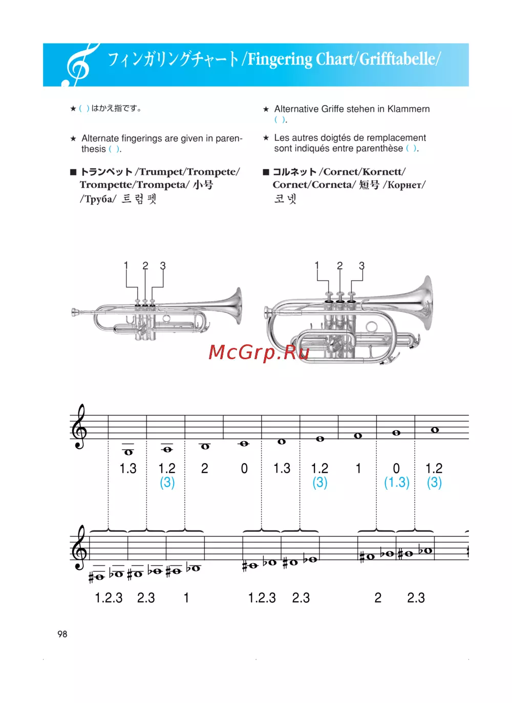 Yamaha Cornet [14/16] フィンガリングチャート fingering chart grifftabelle