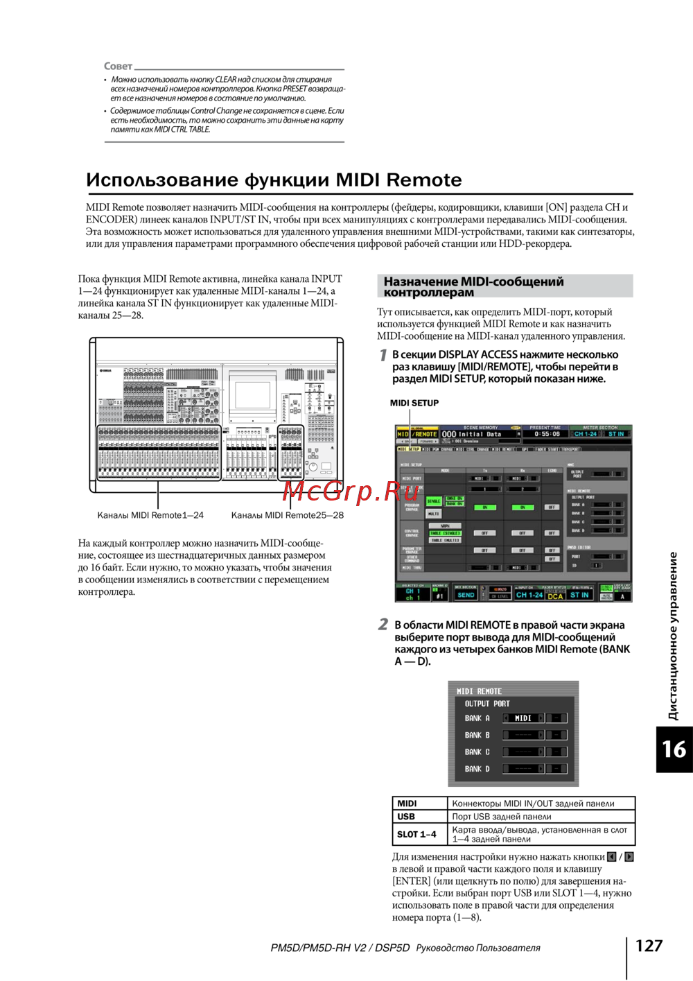 Yamaha DSP5D — руководство пользователя по настройке MIDI Remote и контроллерам [127/341]