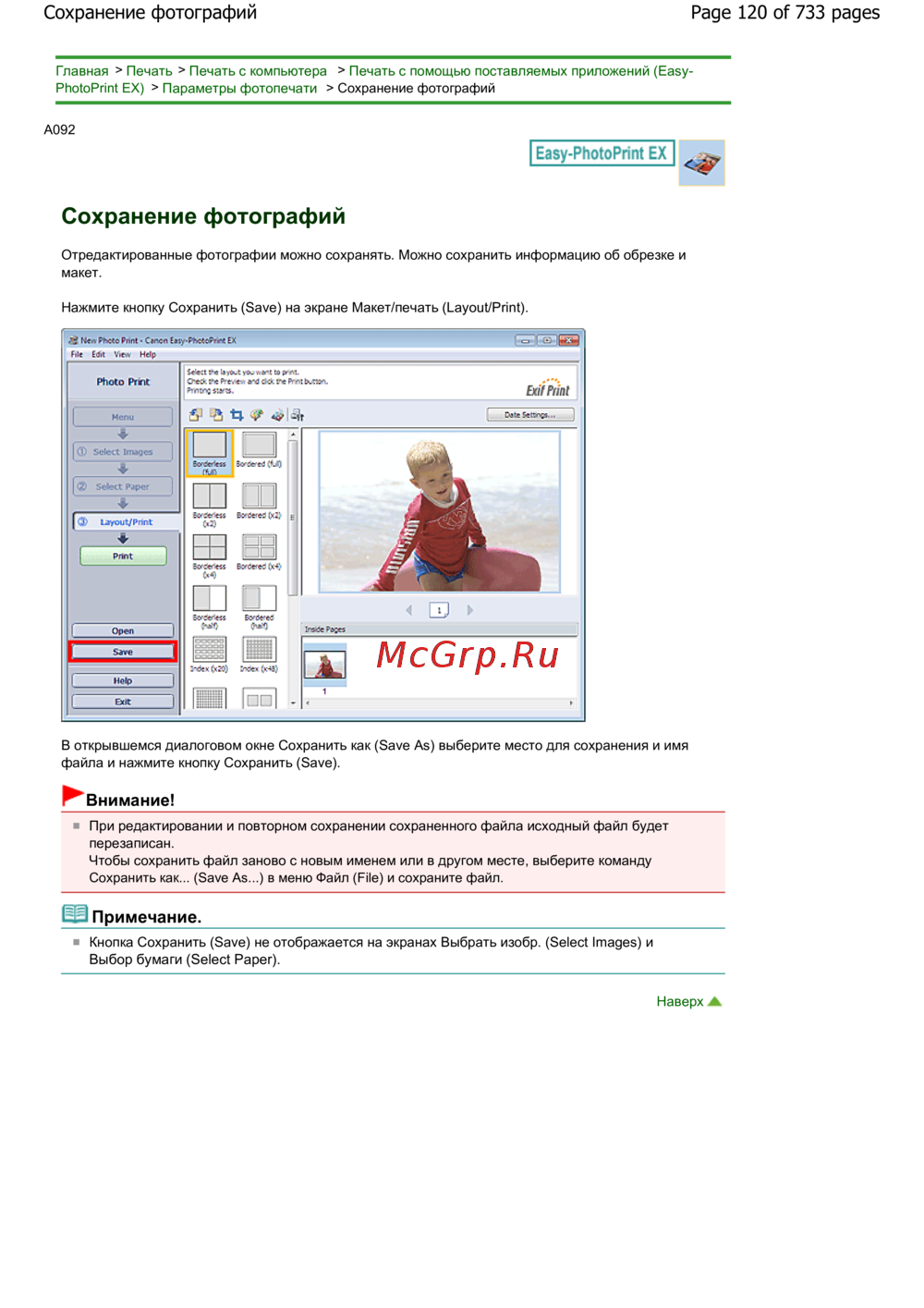 Canon Pixma MG2140 — как сохранить отредактированные фотографии для печати [120/733]