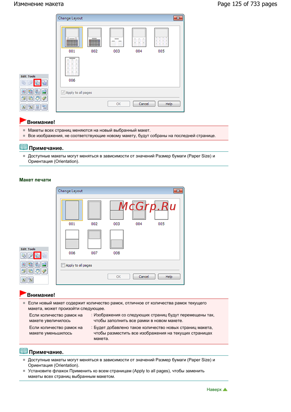 Canon Pixma MG2140 — изменение макета страниц: советы и рекомендации [125/733]