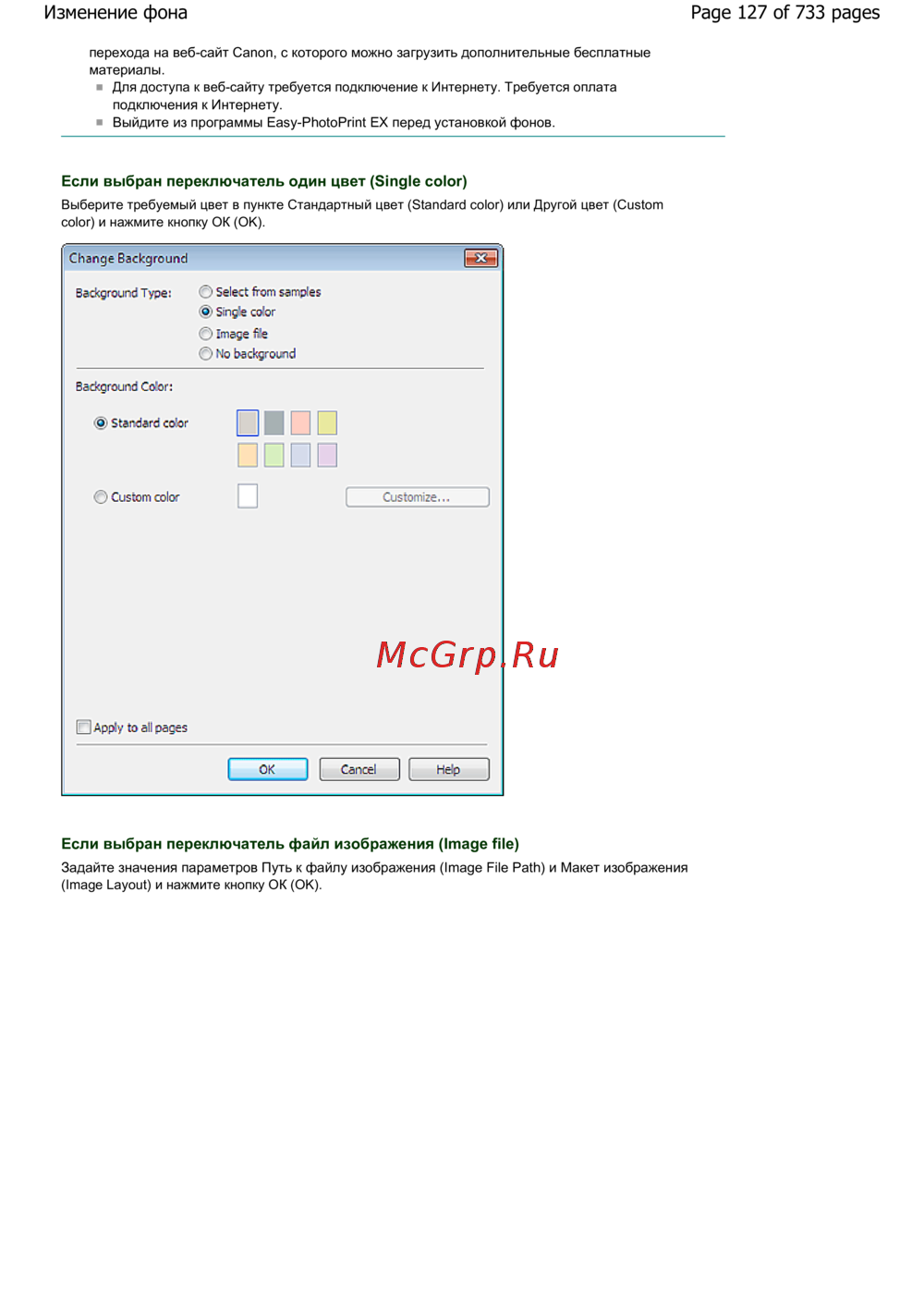 Canon Pixma MG2140 — как изменить фон в приложении для печати изображений [127/733]