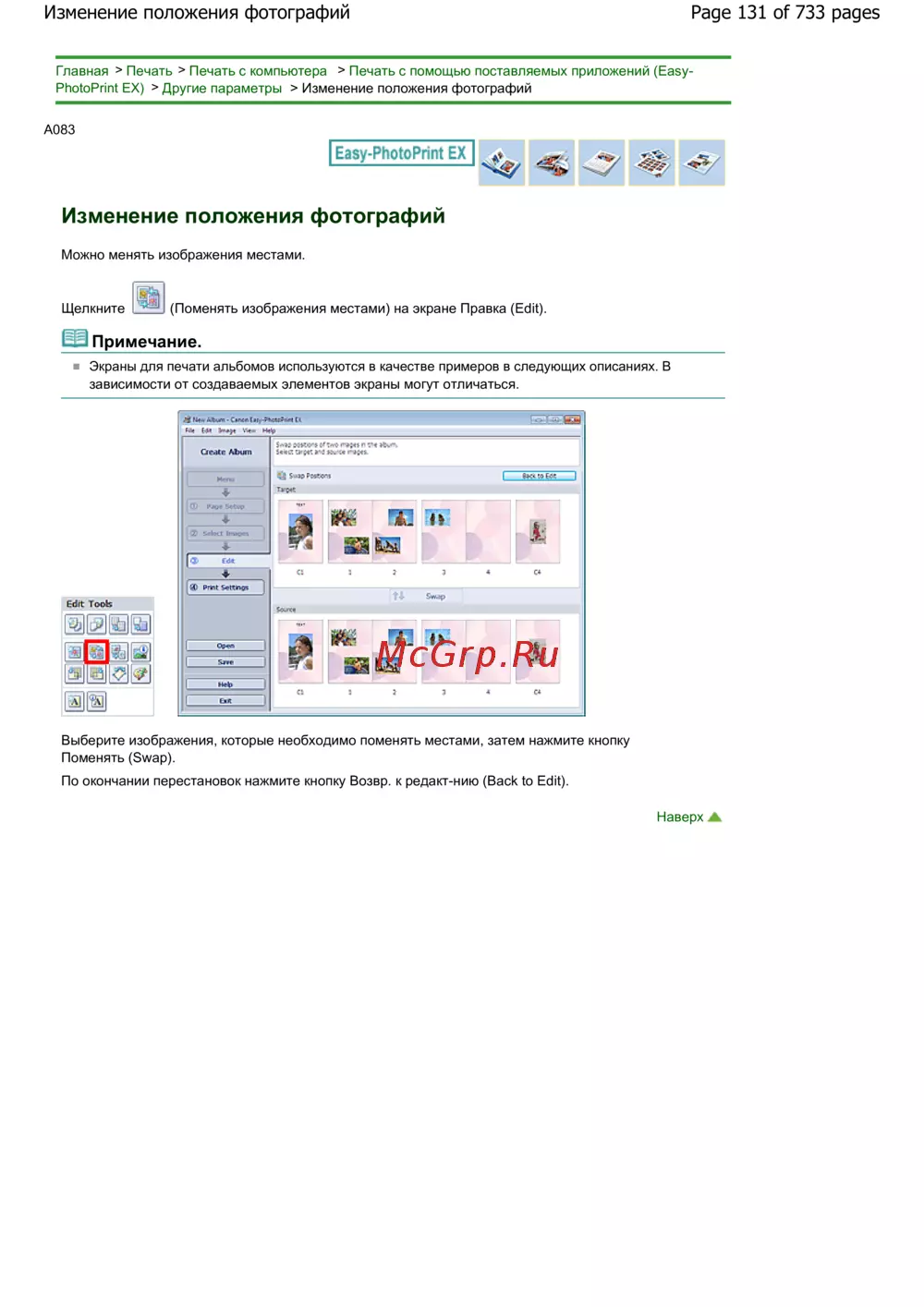 Canon Pixma MP280Руководство по программе My Image Garden (Windows) -