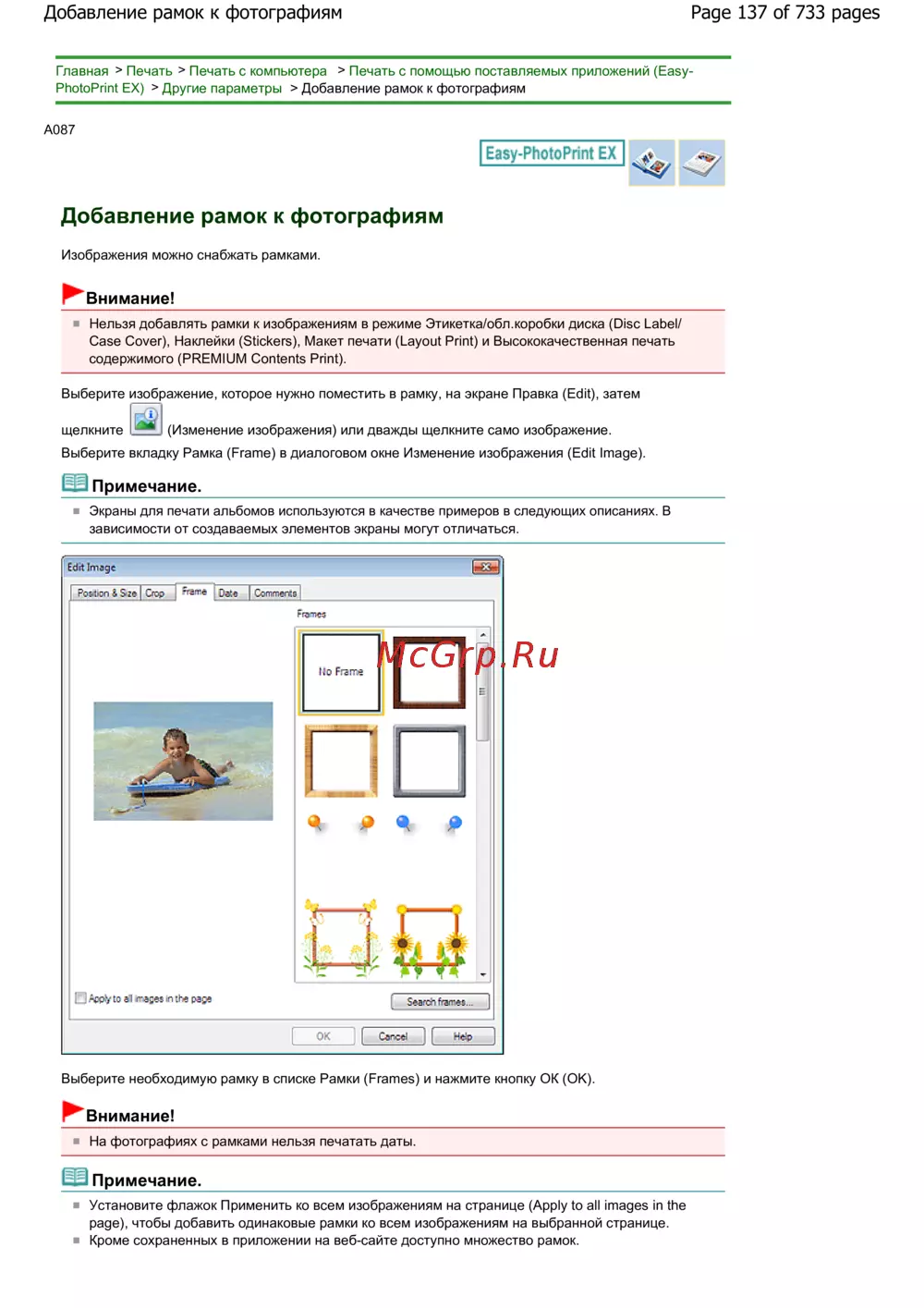 Page 137 of 733 pagesДобавление рамок к фотографиям