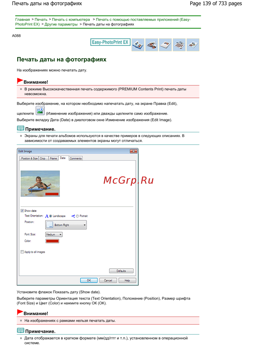 Canon Pixma MG2140 — как напечатать дату на фотографиях с компьютера [139/733]