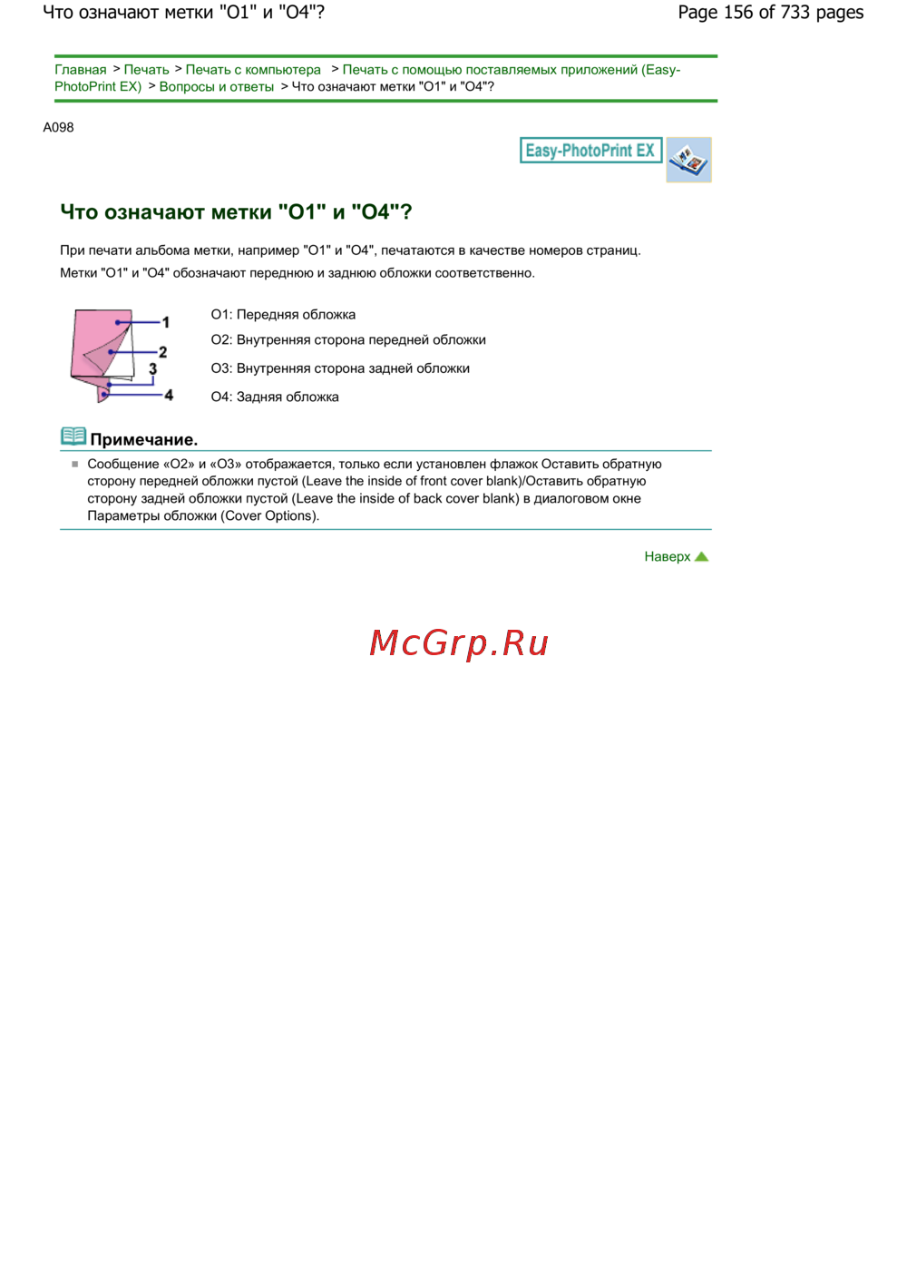 Canon Pixma MG2140 — объяснение меток O1 и O4 при печати альбомов [156/733]