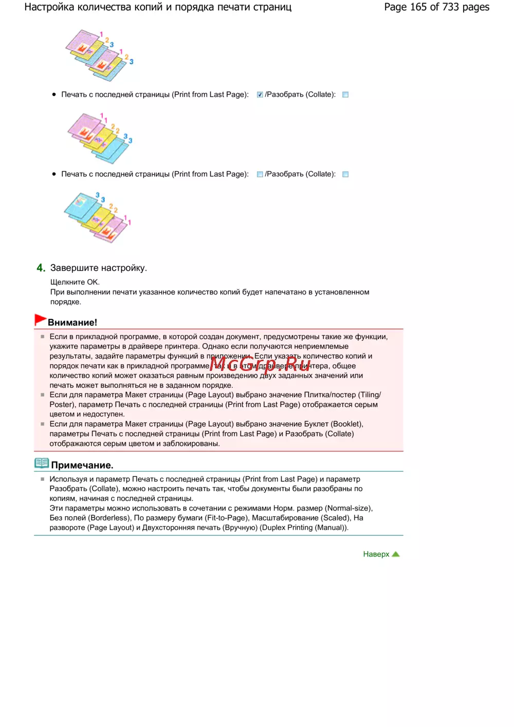 Page 165 of 733 pagesНастройка количества копий и порядка печати страниц